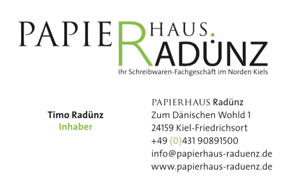 Veröffentlicht am 23. Januar 201526. Oktober 2021Logo | Papierhaus Radünz Entwicklung eines Logos für das Papierhaus Radünz in FriedrichsortLogoentwicklung | Geschäftspapier-Ausstattung | Flyer | Plakat